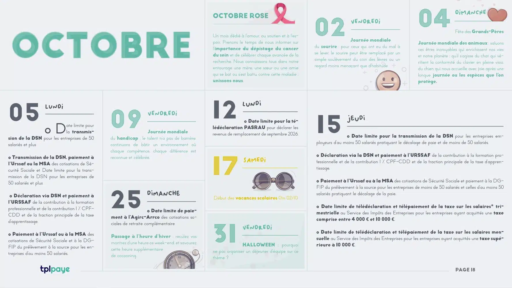 Le fondement du calendrier RH proposé au téléchargement est d’offrir une vue structurée de l’année sociale 2026. Il rassemble dans un même support plusieurs types d’informations à valeur ajoutée et utile pour les professionnels RH et paie.